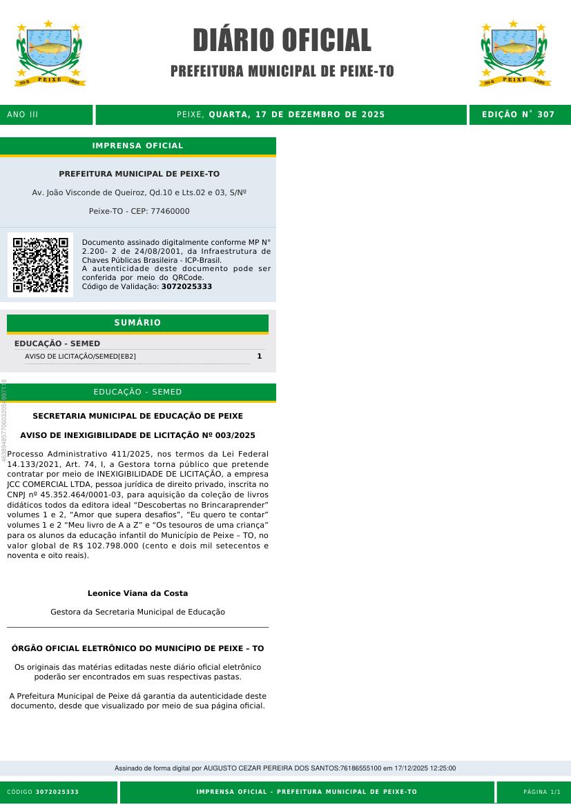 Assinados digitalmente por autoridade certificadora - ICP-Brasil